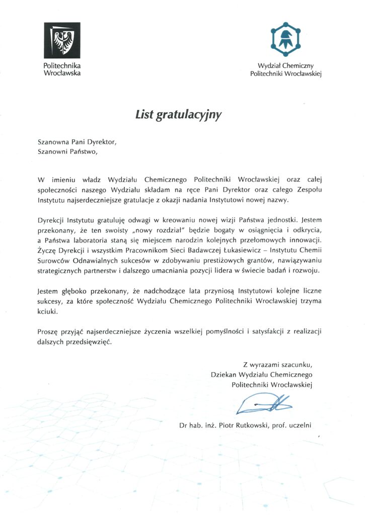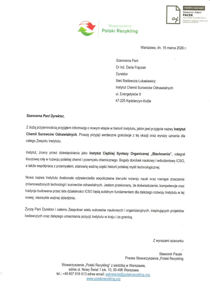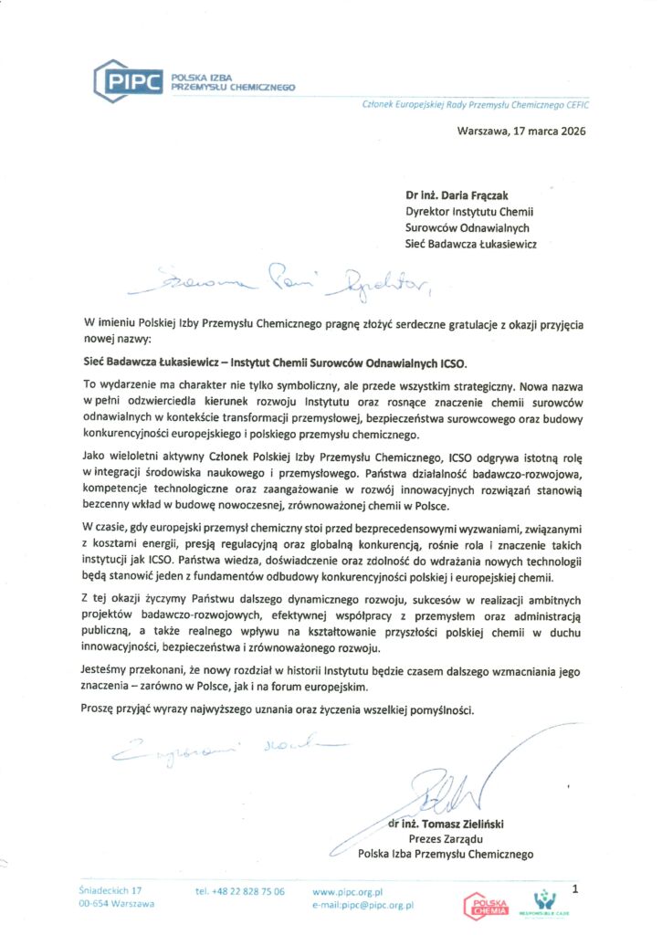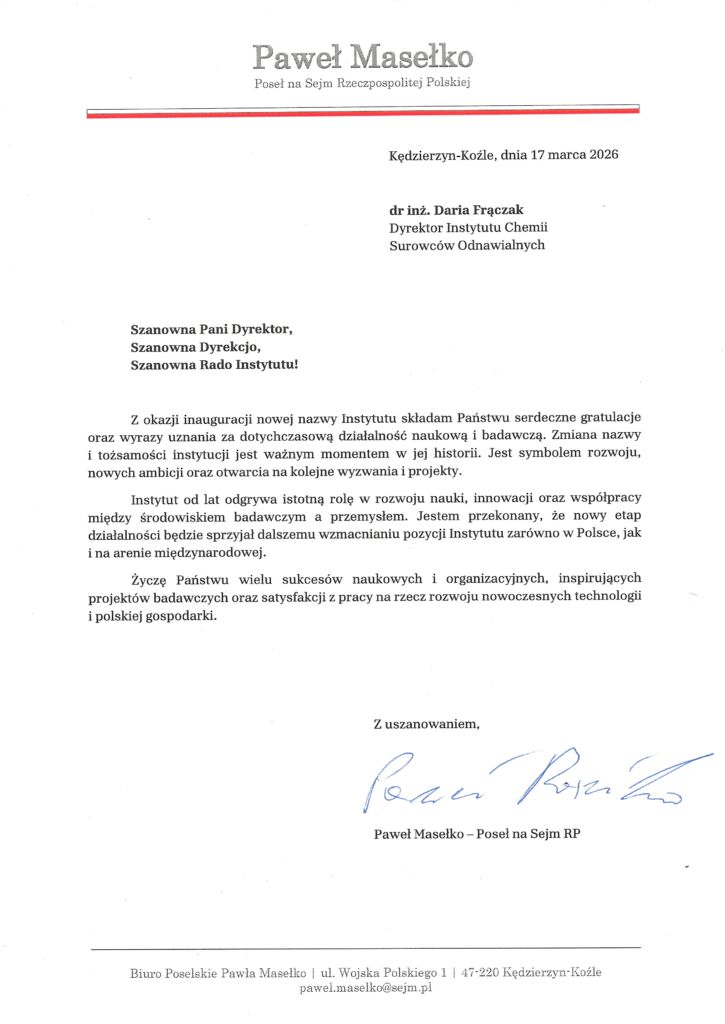 Z okazji uroczystości zmiany naszej nazwy, która odbyła się 17 marca br. otrzymaliśmy listy gratulacyjne od naszych Gości oraz tych z naszych Partnerów, którzy nie mogli uczestniczyć w obchodach osobiście. Z przyjemnością dzieliśmy się z Państwem ich treścią.