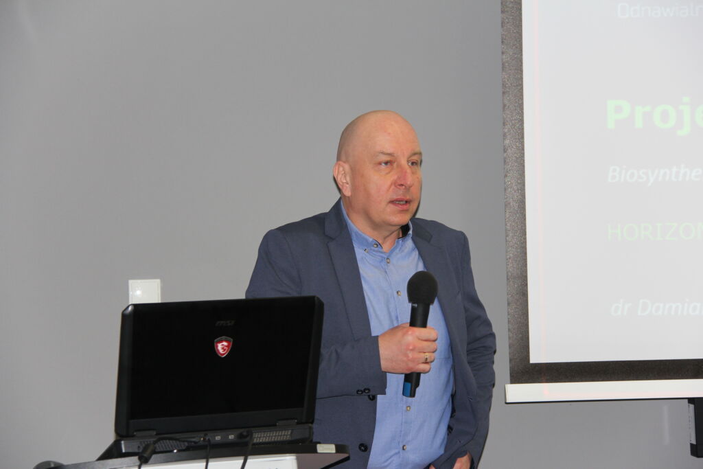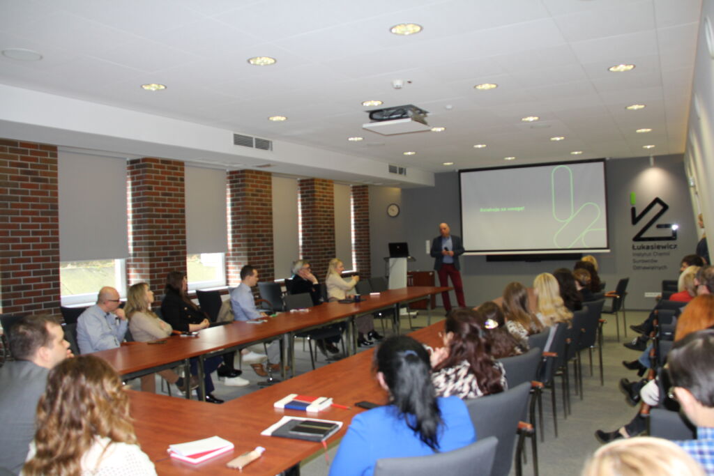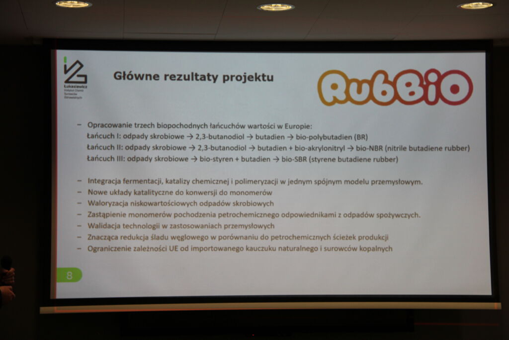 Dr Damian Kiełkiewicz, kierownik Grupy Badawczej Zaawansowanych Materiałów i GOZ, przedstawił sposoby pozyskiwania projektów programie Horizon Europe, na przykładzie „Biosynthesis of RUBber from BIObased sources” (akronim RUBBIO), otrzymanego niedawno przez instytut.  Prelegent kładł duży nacisk na budowę sieci kontaktów, które następnie mogą owocować zaproszeniem do konsorcjów w planowanych projektach. Zadowoleni ze współpracy kontrahenci z jednego projektu są bardziej skłonni do kontynuowania wspólnych działań w kolejnych. Dr Kiełkiewicz zaprezentował także założenia samego projektu, konsorcjum oraz zakres prac do wykonania po stronie Łukasiewicz – ICSO.